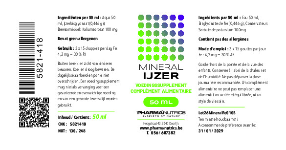 Les gouttes Mineral Fer de PharmaNutrics sont un complément alimentaire liquide à base de bisglycinate de fer. Le fer est un minéral essentiel qui joue un rôle important dans la formation des globules rouges et le transport de l’oxygène dans l’organisme. Grâce à cette formule pure et facilement assimilable, vous soutenez simplement votre apport quotidien en fer.